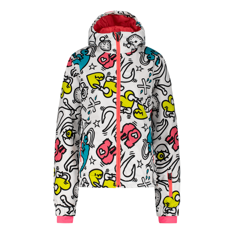 Dečja skijaška jakna sa grafičkim printom # 1RULE. Mekana bilateralna elastična tkanina sa vodootpornim/prozračnim premazom 10.000/10.000 i trajnim vodoodbojnim premazom (DWR) pruža slobodu kretanja i zaštitu od hladnoće, vlage i vetra. Kapulja je podesiva, a sistem za podešavanje veličine GROW IT UP omogućava podešavanje rukava bez prekratkog ili predugog. Manžetne i struk imaju mogućnost dodatne regulacije i jakna odgovara više od jedne sezone.